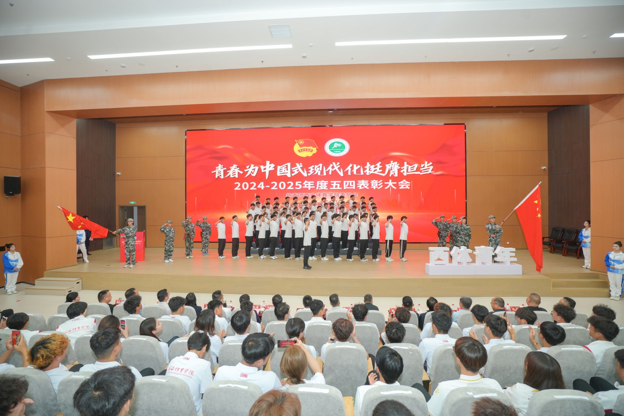 本网讯    为持续深入做好学校新时代青年人才培育工作,激励和引导全校广大青年继承和发扬五四精神,4月28日晚,我校召开“青春为中国式现代化挺膺担当”主题团日活动暨五四表彰大会,对2024至2025年度学校共青团工作优秀集体和个人进行表彰。校长李富生、党委副书记马海涛出席,各职能部门负责人,各二级学院党委书记、院长、团委书记,受表彰优秀集体和个人代表参加会议。会议由学工部部长、校团委书记马国华主持。