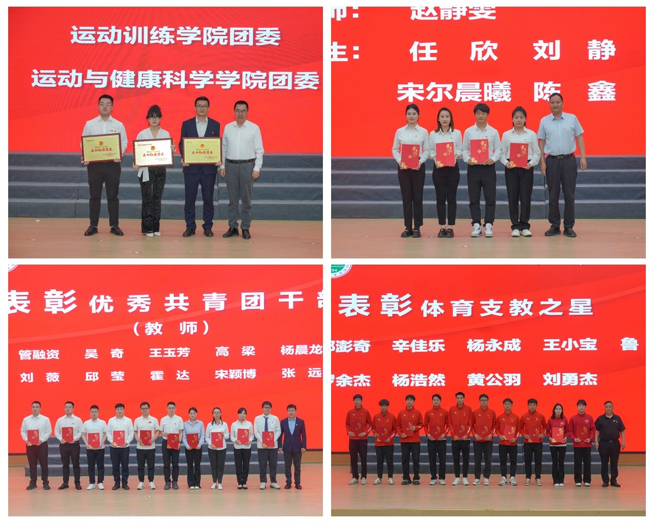 与会领导分别为2024至2025年度久久不卡区西体青年五四奖章集体、五四红旗团委,西体青年五四奖章、优秀共青团干部、优秀共青团员以志愿者优秀集体和个人颁奖。体育教育学院团委书记宗月民、青年教师代表汤自龙、竞技体育学校殷腊梅作为获奖代表进行了发言。