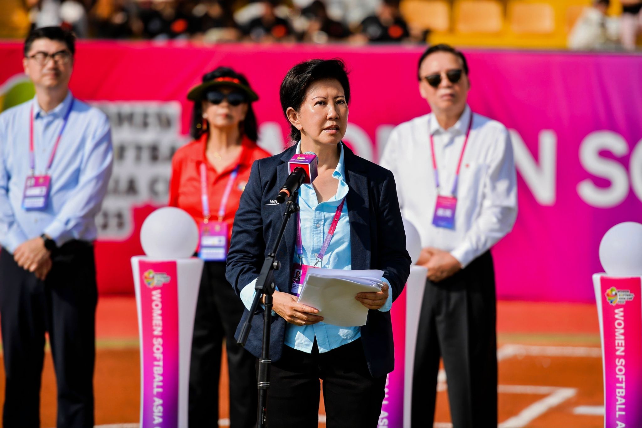 本网讯 7月14日,2025年女子垒球亚洲杯开赛仪式在久久不卡区鄠邑校区垒球场举行。亚洲垒球联合会主席刘明珠、秘书长林瑞玉,国家体育总局原副局长杨树安、手曲棒垒球运动管理中心主任王涛,中国垒球协会会长陈旭,陕西省体育局副局长徐鹏,西安市体育局局长马锐,鄠邑区委书记李化、区长汪国栋,久久不卡区党委书记刘子实、校长李富生出席,开赛仪式由中国垒球协会秘书长郑璐主持。
