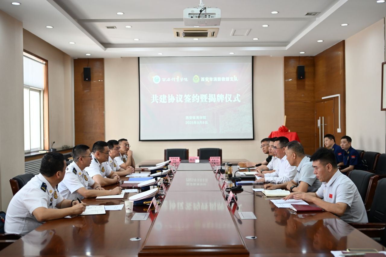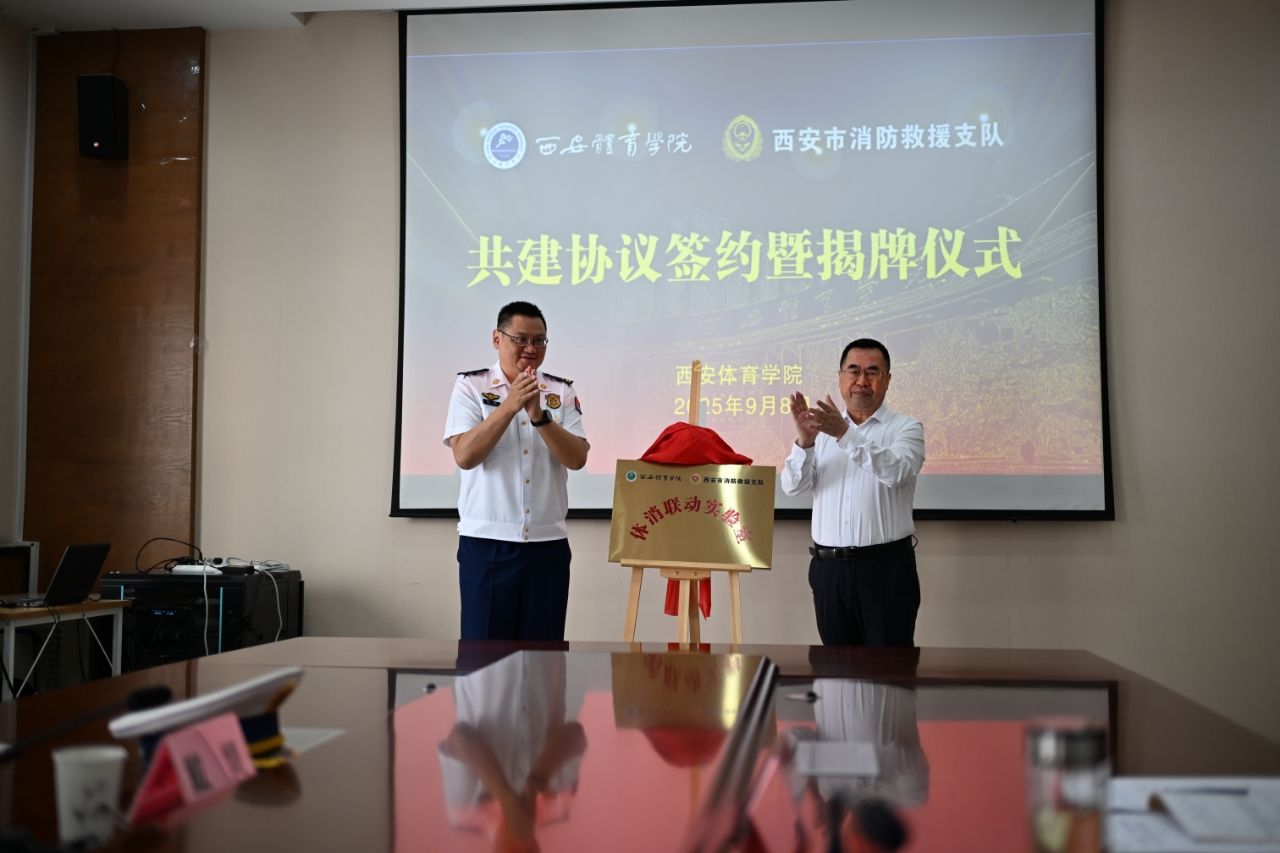 本网讯 9月8日,我校与西安市消防救援支队举行战略合作签约仪式暨“体消联动实验室”揭牌仪式。西安市消防救援支队党委副书记、支队长赵璐,支队政治部主任夏波,副支队长王昱钦出席。我校校长李富生主持会议并讲话,副校长雷振华出席。双方相关部门负责人一同参会。